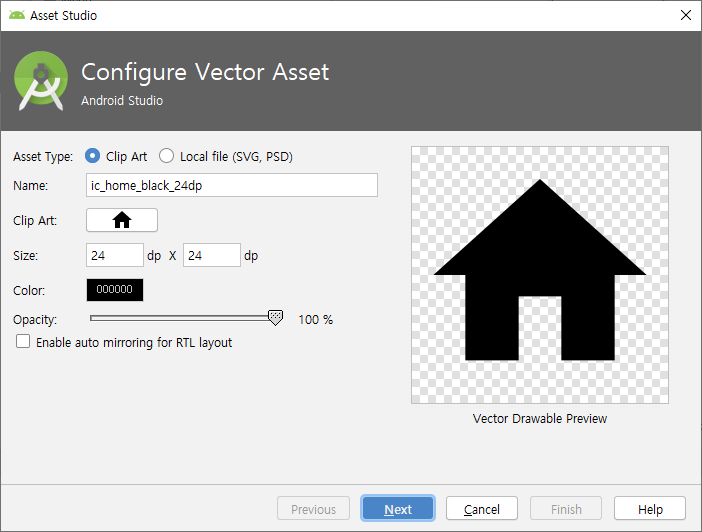 어플리케이션을 만들 때 Android Studio에서 기본적으로 제공하고 있는 벡터 이미지 사용하는 방법을 알아보겠습니다.