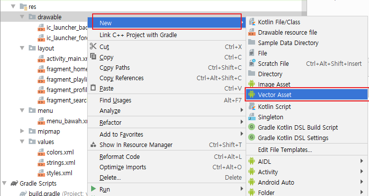 1. [res] - [drawable] - [New] - [Vector Asset]
